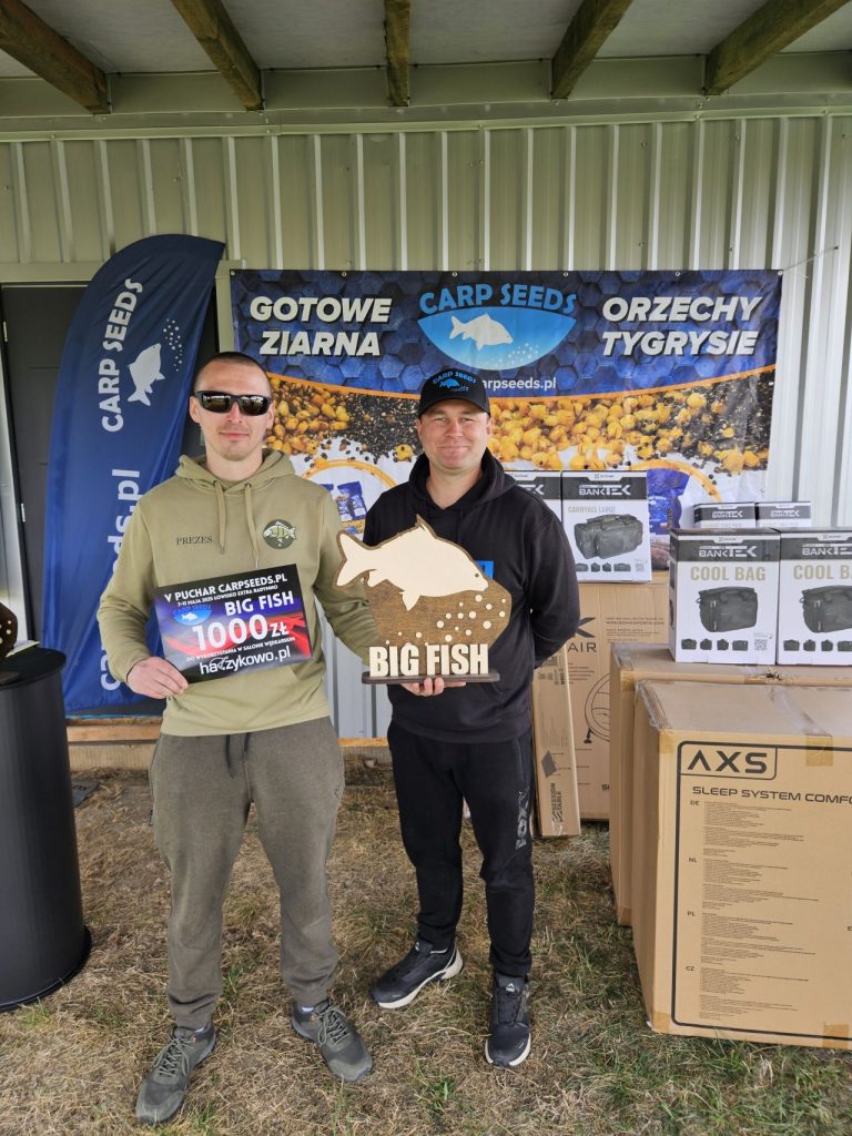 Łowcą Big fisha zostaje Paweł Cempa, st nr 5, karp o wadze: 24,275 kg. Otrzymuje on bon do sklepu http://www.haczykowo.pl na 1000 PLN ufundowany przez haczykowo.pl