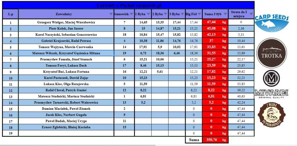 I zawody o Puchar CARPSEEDS.PL – wyniki końcowe