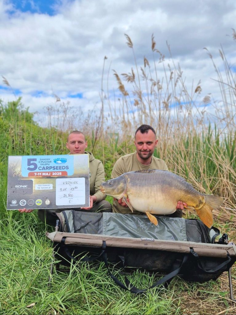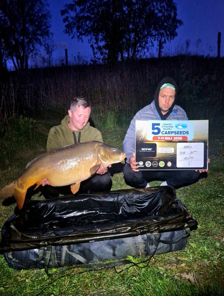 Po dwóch dobach mamy złowione 4 karpie powyżej 20 kg, a aktualny Big Fish to ryba o wadze 24,275 kg złowiony przez Pawła na st nr 5. Co więcej Krzysztof i Paweł mają na koncie imponujący łączny wynik 65,3 kg w 3ech rybach. Oprócz wspomnianego Big Fisha złowili drugą rybę o wadzę 21,500 kg, a dopełnieniem jest karp o wadze 19,525 kg. Te 3 ryby pozwalają im myśleć o wysokiej lokacie. Spójrzcie na te potężne karpiszony: