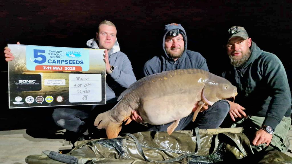 Tuż za nimi jest drużyna również z dwoma ryba, z tym jedną o wadze 22,450 kg. Paweł, Dawid i Kacper ze st nr 19 bezwątpienia mierzą w podium, muszą jednak złowić jeszcze jedną rybe do kompletu i musi być ona duża. Zobaczcie dotychczasowe ich karpie: